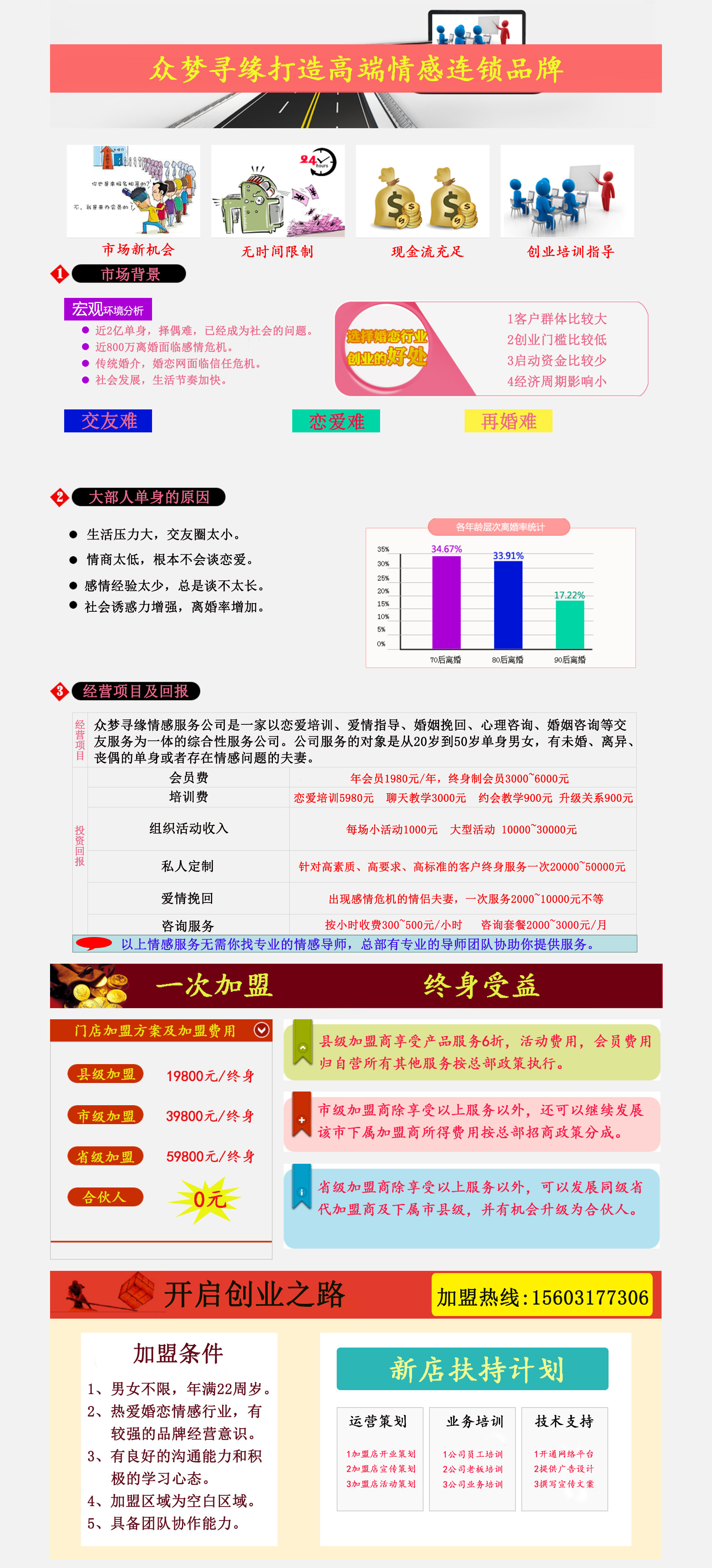 眾夢(mèng)尋緣情感服務(wù)公司本著誠(chéng)信為本、積極開拓、優(yōu)質(zhì)服務(wù)的精神和專業(yè)用心負(fù)責(zé)的理念開始全面發(fā)展的新時(shí)期,在探索中發(fā)展,在創(chuàng)新中前行。公司用耐心、細(xì)心、貼心的服務(wù)幫助近萬(wàn)名有情感問題的客戶解決了情感困擾。